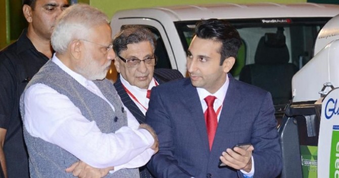 나렌드라 모디 인도 총리(왼쪽)와 세룸 인스티튜트(SII)의 아다르 푸나왈라 최고경영자(오른쪽)이 이야기를 나누고 있다. 사진=푸나왈라 최고경영자 트위터 캡처