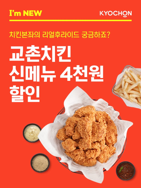 이미지 확대보기교촌에프앤비㈜가 신메뉴 ‘교촌얼후라이드’ 2종 출시 기념 요기요 4000원 할인 이벤트를 진행한다.