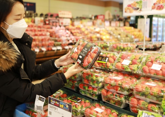 이미지 확대보기9일 롯데마트는 2018년과 2019년, 2020년 겨울철(1~2월) 국산 과일의 매출을 분석한 결과, 딸기가 다른 과일들 대비 가장 높았다고 밝혔다.