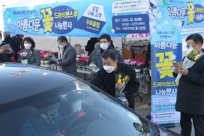특히 정연태 농협유통 대표와 임영호 한국화훼단체협의회 회장이 직접 나서 드라이브 스루 방식으로 시민들에게 꽃을 전달해 이목을 끌었다.