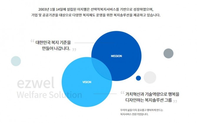 이지웰은 2003년 설립된 복지서비스 전문기업으로 기업이나 공공기관을 대상으로 사내 복지를 위한 온라인 쇼핑몰을 위탁 운영한다. 올 상반기 기준 시장 점유율 50% 이상을 차지하는 국내 1위 사업자이기도 하다.