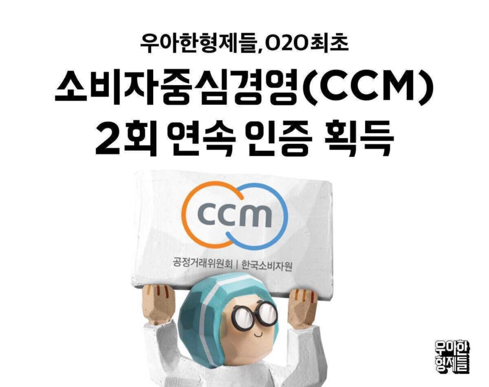 이미지 확대보기공정거래위원회가 인증하고 한국소비자원이 운영하는 CCM 인증은 기업이 수행하는 모든 활동을 소비자 관점에서 소비자 중심으로 구성하고, 관련 경영활동을 꾸준히 개선하고 있는 지 심사하는 제도다. 인증 기간은 2년이다.