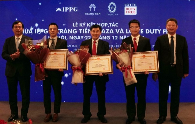 이미지 확대보기이날 열린 롯데면세점 하노이시내점 운영 계약식에는 김의중 주베트남 한국대사관 상무관, 박석원 롯데면세점 베트남 법인장, 응웬 마잉 꿴 하노이인민위원회 부위원장이 참석했다. 짱띠엔플라자 운영사인 베트남 IPP그룹을 대표해 조나단 하잉 응웬 IPP그룹 회장과 레 티 란 푸옹 IPP그룹 하노이지사장도 모습을 드러냈다.
