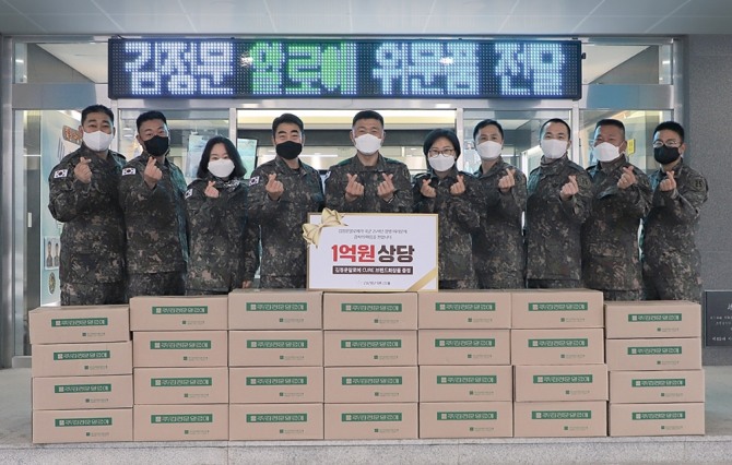 최연매 김정문알로에 대표는 "코로나19 장기화로 힘든 시기에도 국민의 안전을 위해 애쓰는 장병들을 격려하는 취지에서 위문품을 전달했다"면서 "올해는 직접 부대를 방문할 수 없어 아쉽지만 남은 군 생활을 무사히 마치는 데 조금이나마 보탬이 되기를 바란다"라고 말했다.