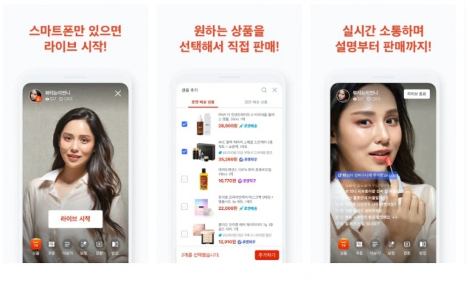 이미지 확대보기29일 업계에 따르면 최근 쿠팡은 '쿠팡 라이브 크리에이터'(이하 쿠팡 라이브) 앱을 출시했다. 쿠팡 아이디로 접속해 스마트폰을 이용해 라이브 방송을 시작할 수 있다. 원하는 상품을 선택해서 직접 판매가 가능하다. 실시간으로 소통하며 설명, 판매, 데이터 분석까지 한 앱에서 할 수 있다. 일반적인 라이브 커머스(실시간 동영상 스트리밍으로 상품을 소개하고 판매하는 방식) 플랫폼과 다를 게 없다.