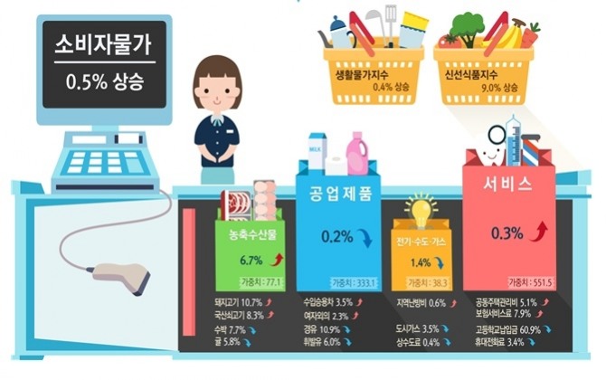 올해 소비자물가 0.5% 올라…첫 2년 연속 0%대