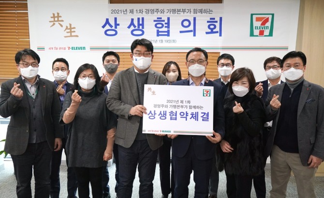 이미지 확대보기지난 19일 세븐일레븐이 체결한 ‘2021년 가맹점 상생협약’의 내용은 점포 운영에 필요한 제반업무의 간소화‧효율화로 가맹점주들의 편의를 증진하는 데 초점이 맞춰졌다.