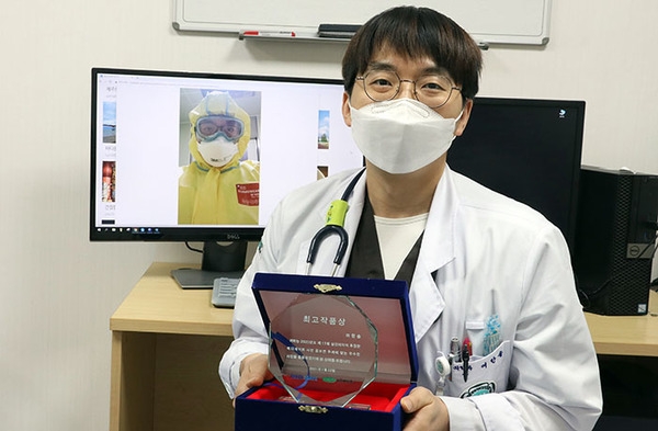 이번에는 '코로나 블루를 이겨내는 나만의 방법'을 주제로 공모전이 열렸다. 총 538작품이 출품됐으며 그중 여한솔 전공이의 '코로나는 최전선에서 극복합시다'가 최고작품상을 받았다. 이 작품은 격리 구역에서 응급 환자를 진료하기 전 방역복을 입고 코로나19의 어려움을 함께 이겨내자는 의지를 표현한 사진이다.