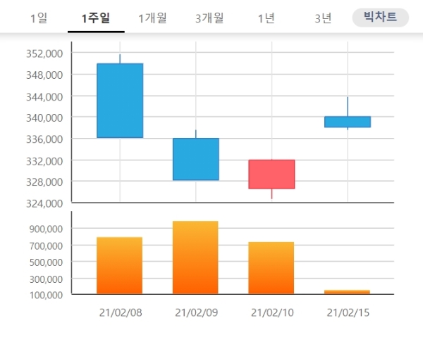 셀트리온 주가는 종가기준으로 3일 34만7500원에서 10일 33만2000원으로 소폭 내렸다.