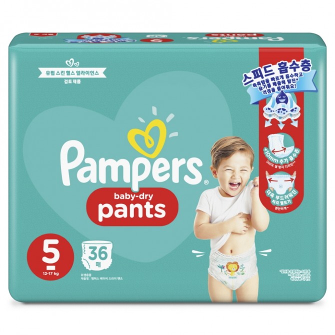 이미지 확대보기세계 판매 1위 기저귀 브랜드 팸퍼스는 ‘베이비 드라이 팬티형’ 기저귀에 흡수력과 착용감을 보완해 새롭게 내놨다.