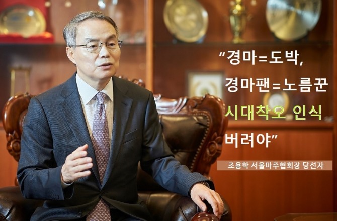 이미지 확대보기7일 경기 과천 서울경마공원 관람대 내 서울마주협회장실에서 만난 조용학 제12대 서울마주협회장 당선자는 인터뷰 첫 말문을 현재 마주협회와 말산업계의 최대 현안인 ‘온라인 발매 도입’으로 시작했다.