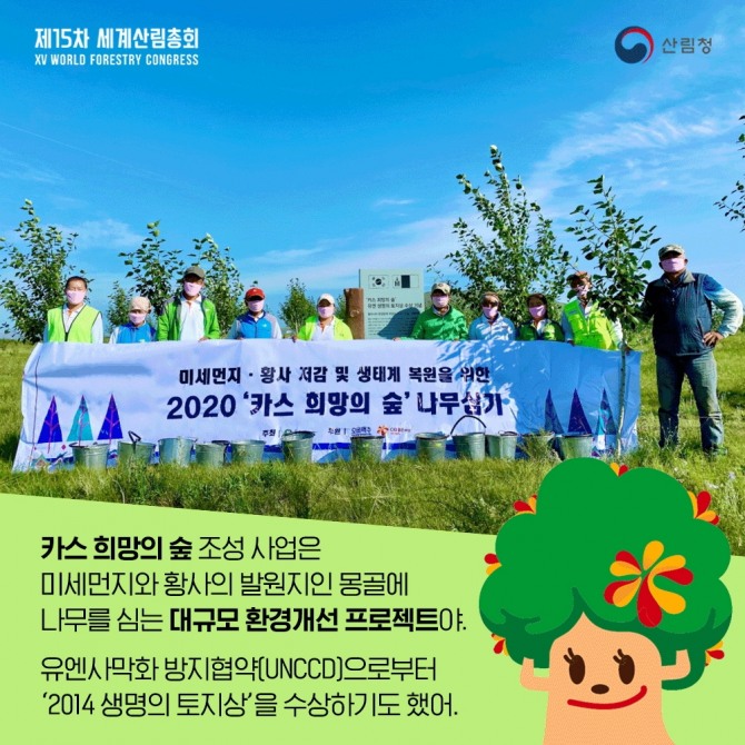 카스 희망의 숲 캠페인은 미세먼지와 황사의 발원지인 몽골에 나무를 심는 대규모 환경개선 프로젝트다.