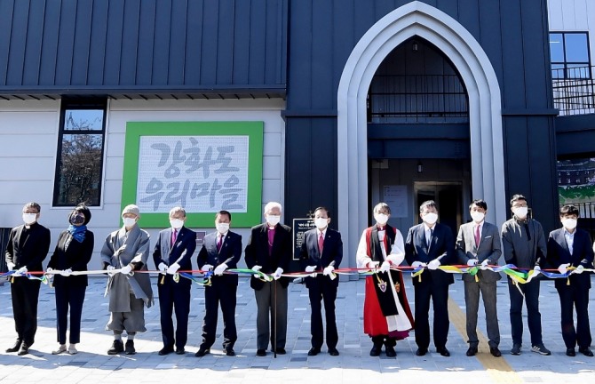 이미지 확대보기강화도 우리마을의 새 콩나물 공장 준공식은 14일 인천 강화 길상면 우리마을에서 대한성공회 김성수 주교와 이경호 주교, 배준영 국회의원, 유천호 강화 군수, 신득상 강화군의회 의장, 풀무원 이효율 총괄 CEO 등이 참석한 가운데 코로나19 방역 수칙을 준수하여 최소한의 인원으로 진행됐다.
