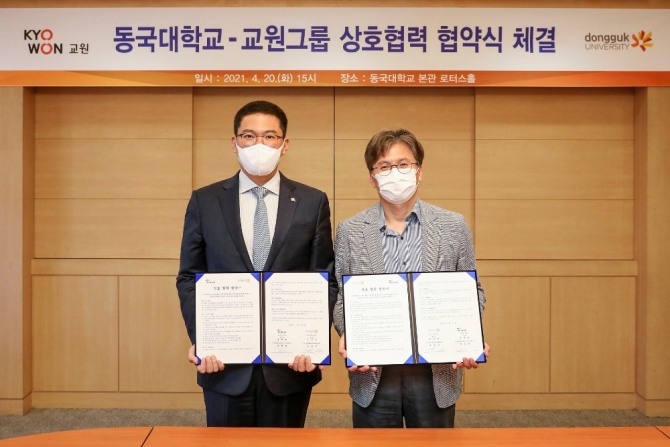 교원그룹은 전날 장동하 교원그룹 기획조정실장과 조상식 동국대학교 사범대학(교육대학원)장 등 양 기관의 주요 관계자가 참석한 가운데 서울 중구에 위치한 동국대학교 본관에서 협약식을 진행했다고 21일 밝혔다.