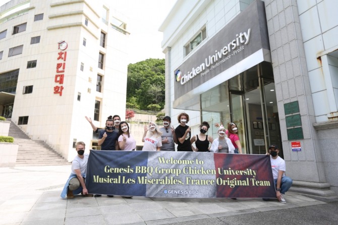 이미지 확대보기치킨 프랜차이즈 제너시스BBQ가 전 세계적으로 사랑받고 있는 레미제라블 프랑스 오리지널 내한팀을 치킨대학에 초청했다고 11일 밝혔다.