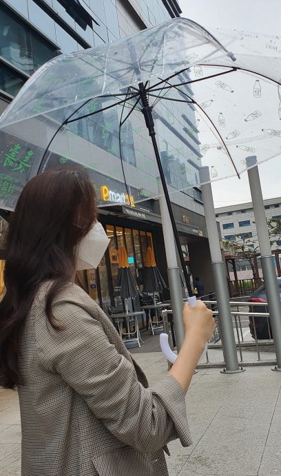 이마트24는 장수막걸리병이 그려진 우산을 선보였다. 사진=이마트24이미지 확대보기