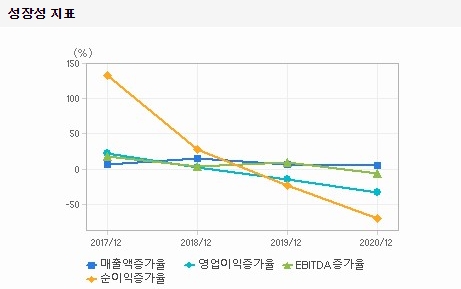 기업 성장성 지표인 매출액 증가율은 2019년 7.2%에서 지난해 5.6%를 기록했다. 지난해 영업이익도 603억 원으로 2019년(899억 원)과 비교해 33% 줄었다.