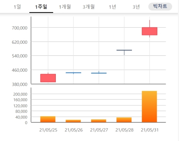 남양유업 주가는 종가기준으로 지난달 21일 38만5000원에서 지난달 31일 70만 원으로 약 82% 뛰었다.