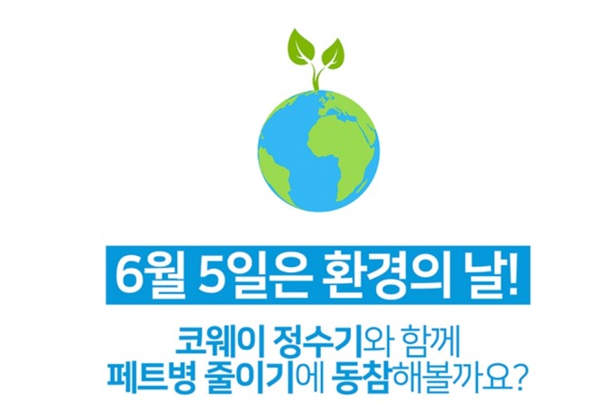 이미지 확대보기6월 5일 환경의 날을 맞아 베스트 라이프 솔루션 컴퍼니 코웨이(대표 이해선, 서장원)가 ‘페트병 사용 줄이기’ 캠페인을 전개하고 영상 공개 및 이벤트를 진행했다.
