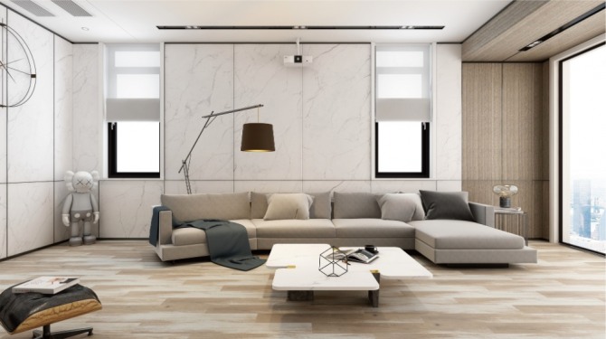 또 지난 4월에 개최한 ‘2021년 봄 라이프스타일 트렌드 발표회’에서는 모델하우스의 거실 공간 전체를 벽지 대신 인테리어 보드로 마감했다