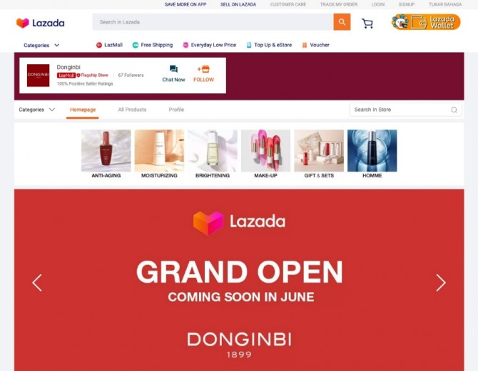 동인비는 라자다가 진출한 6개국 중 싱가포르와 말레이시아에서 동인비 브랜드관을 오픈했다. 여기에는 동인비 대표 제품인 '1899 싱글 에센스'를 비롯해 '자생 원액 에센스', '1899 시그니처 오일' 등 총 34종의 제품이 입점된다.