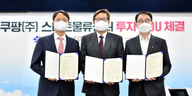 이미지 확대보기쿠팡은 부산광역시, 부산진해경제자유구역청과 부산 강서구에 물류센터를 건립하기 위한 양해각서(MOU)를 체결했다고 17일 밝혔다. 쿠팡은 2200억 원을 투자해 17만 ㎡ 규모의 물류센터를 지을 예정이다.