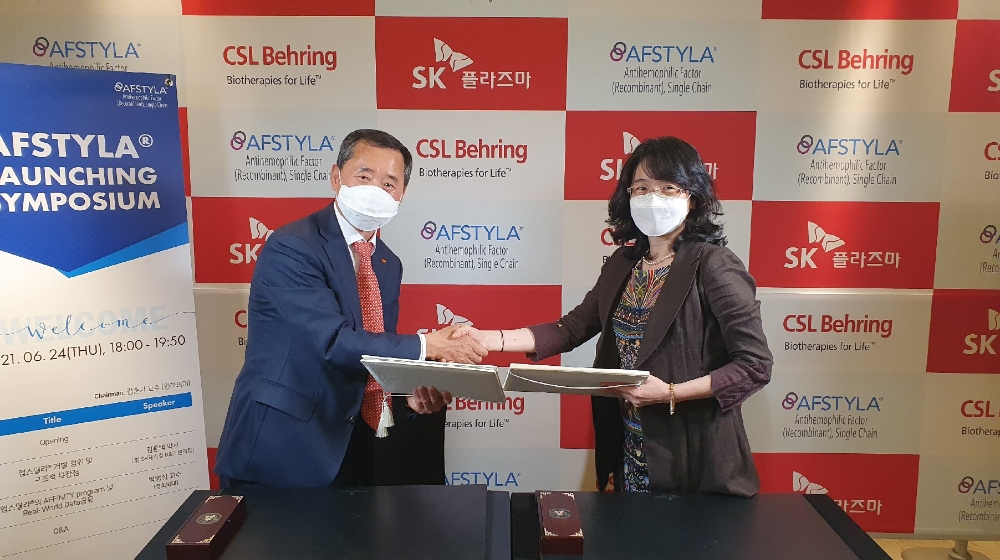 이미지 확대보기SK플라즈마는 씨에스엘베링 코리아의 장기지속형 유전자재조합 8인자 제제 앱스틸라(성분명 로녹토코그알파)에 대해 독점 판매 계약을 맺었다고 25일 밝혔다.