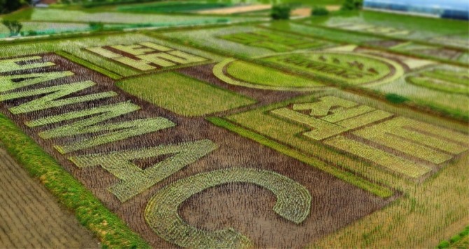 충청북도 제천에 8200㎡(약 2500평) 규모로 조성되는 필드아트는 일반 벼로는 만들 수 없는 다채로운 이미지를 선보이기 위해 형형색색의 유색 벼를 활용했다.