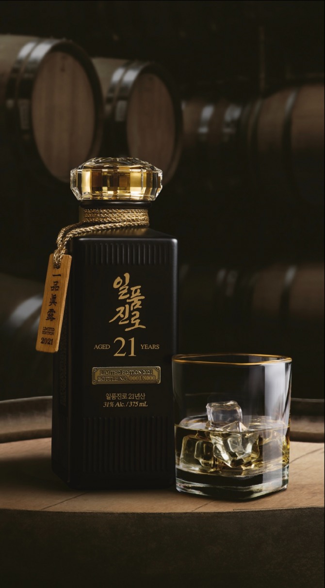 일품진로 21년산은 제품마다 리미티드 넘버를 부여해 단 8000병만 출시되며 희소가치를 높여 한정된 레스토랑과 업소, 고급 호텔 등에서 판매될 예정이다.