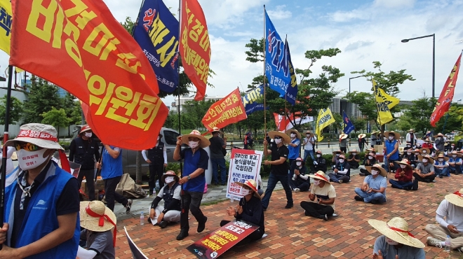 이미지 확대보기전국 19개 말산업 단체가 참여하는 축산경마산업비상대책위원회(축경비대위)는 13일 정부세종청사 농림축산식품부 청사 앞에서 온라인 마권발매 입법촉구 결의대회를 열고, '온라인 마권발매 즉각시행'과 온라인 발매를 반대하는 '김현수 농림축산식품부 장관 퇴진'을 요구했다.