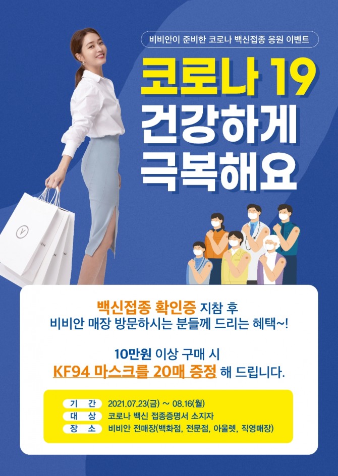 이미지 확대보기비비안은 코로나19 확산세가 수그러들지 않는 상황에서 국민들의 코로나19 극복을 독려하고 기업 차원에서 백신 접종을 응원하기 위해 이번 이벤트를 기획했다고 설명했다.