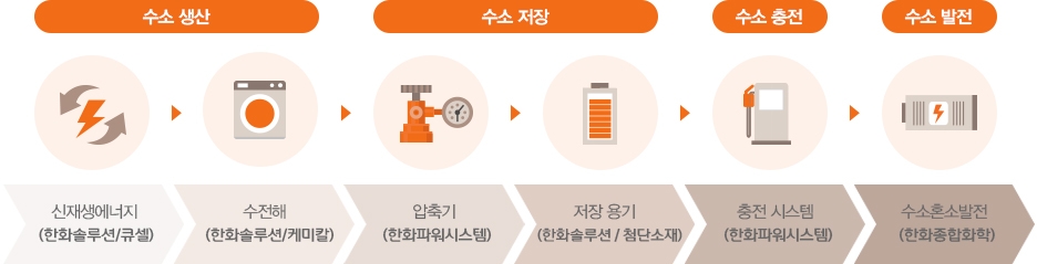 화학업체 한화솔루션 케미칼 부문은 그린수소(친환경 방식으로 생산된 수소) 생산을 위한 수전해 기술(물을 분해해 수소를 얻는 기술)을 개발하고 있으며 한화솔루션 첨단소재 부문은 수소를 보관하기 위한 첨단 수소연료탱크를 개발했다.