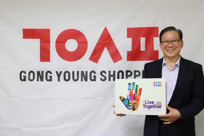 이미지 확대보기공영쇼핑 박진상 대표이사 직무대행(이하 박진상 직무대행)은 12일 서울시 마포구 공영쇼핑 본사에서 인종차별에 반대하는 ‘리브투게더(Live Together)’ 챌린지에 동참했다.