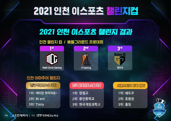인천테크노파크(이하 인천TP)는 인천광역시가 주최한 '2021 인천 e스포츠 챌린지'를 성공적으로 마무리했다고 18일 밝혔다.