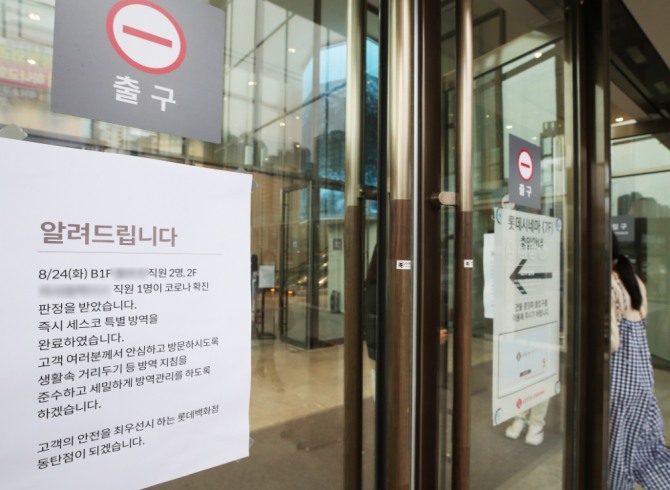 이에 롯데백화점 측은 직원들에게 27일까지 검사를 받고 결과가 나올 때까지 자택에서 대기한 후 음성 판정을 받으면 출근하도록 공지했다.