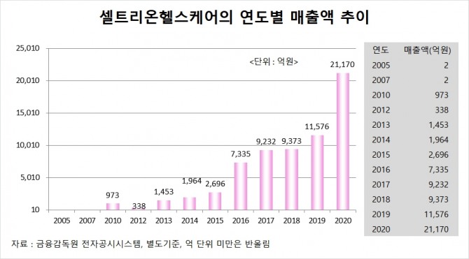셀트리온헬스케어가 금융감독원에 공시를 시작한 지난 2005년의 재무상태는 자본금 30억원, 자본총계 62억원, 부채총계 148억원으로 자산총계가 210억원 규모입니다.