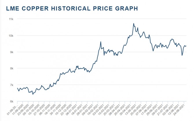 1년 전 가격 6788.5달러에 비해 37.8% 급등했다. t당 1만 달러를 돌파하며 사상 최고치를 경신한 지난 5월 중순과 비교하면 상승세가 둔화했지만 여전히 9000달러를 웃돈다.