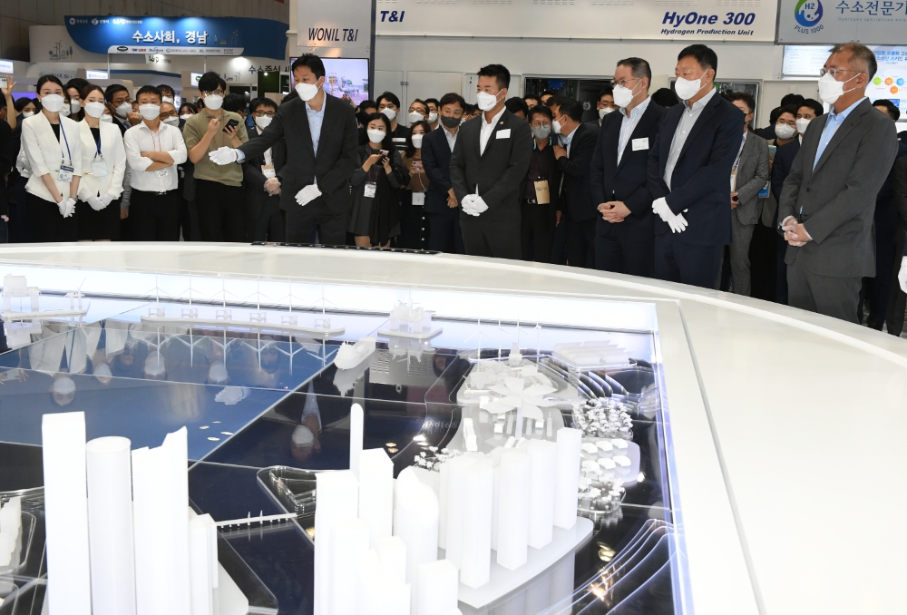 수소 사회 생태계를 한 눈에 볼 수 있는 디오라마(축소 모형물)와 실제 개발 중인 수소운반선, 수소탱크, 수소연료전지 건설기계 등 모형이 등장해 행사 참가자들의 이해를 도왔다.