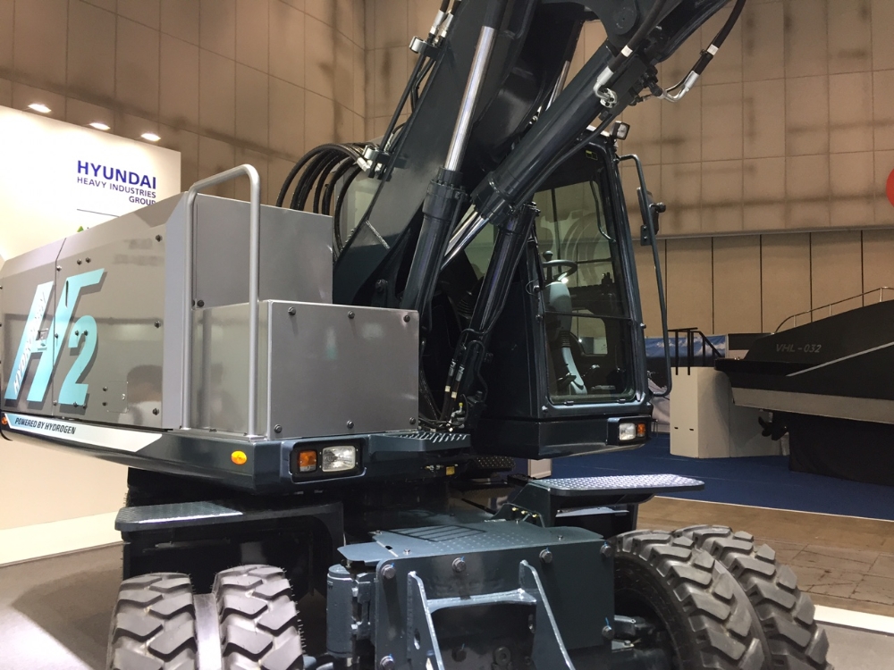 현대건설기계는 수소연료전지 건설장비 테스트 모델을 개발하며 2023년 상용화를 목표로 제품 개발에 박차를 가하고 있다. 이번 행사에서는 14t 규모 수소 굴착기가 공개돼 관람객 눈길을 끌었다.