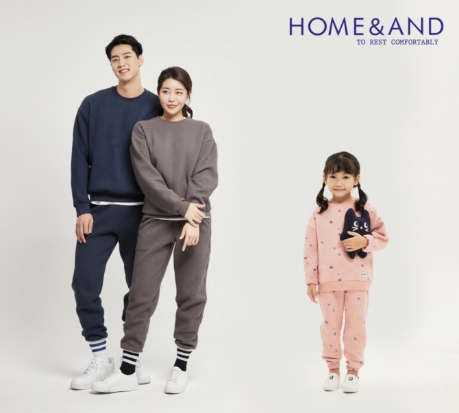 자연소재를 사용해 피부에 자극이 적고, 편안하고 실용적인 소아용 아우터 디자인 이지웨어 '홈엔키즈'도 출시돼 온 가족 홈웨어로 연출이 가능하다.