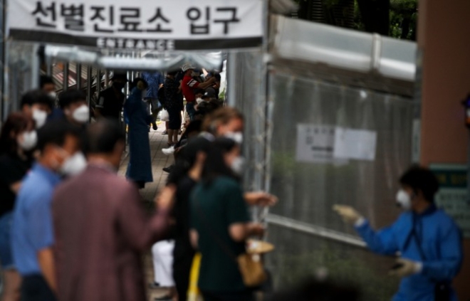 지난달 23일 오전 서울 관악구보건소 내 코로나19 선별진료소를 찾은 시민들이 검사를 받기 위해 서 있다. 사진=뉴시스이미지 확대보기