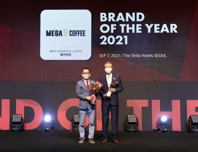 메가엠지씨커피(메가커피)가 '2021 올해의 브랜드 대상'에서 카페 프랜차이즈 부문 1위를 차지했다. 사진=메가커피