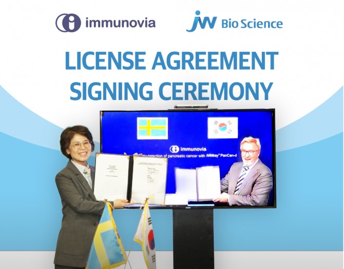 패트릭 달렌 이뮤노비아 대표는 "이번 계약으로 이뮤노비아의 독립 지적재산권이 확보돼 기쁘게 생각한다"며 "앞으로 JW바이오사이언스와 췌장암 조기 진단서비스와 키트의 상업화를 위한 개발 협력도 검토해 나가겠다"고 말했다.