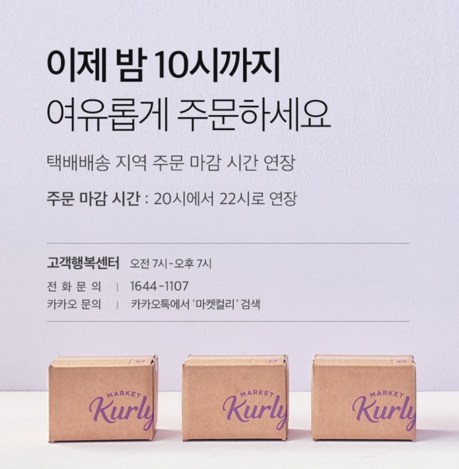 마켓컬리는 '샛별배송' 예외 지역을 대상으로 하는 택배배송 주문 마감시간을 기존 밤 8시에서 10시로 2시간 연장했다고 27일 밝혔다.