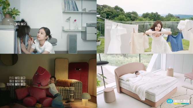 이미지 확대보기에이스침대는 지난 8월 블랙핑크의 멤버 제니를 좋은 잠 캠페인 시즌 2의 새로운 모델로 선정하고 ‘쌓고 편’, ‘쌓지 말고 편’ 등 두 편의 광고 영상을 공개했다.