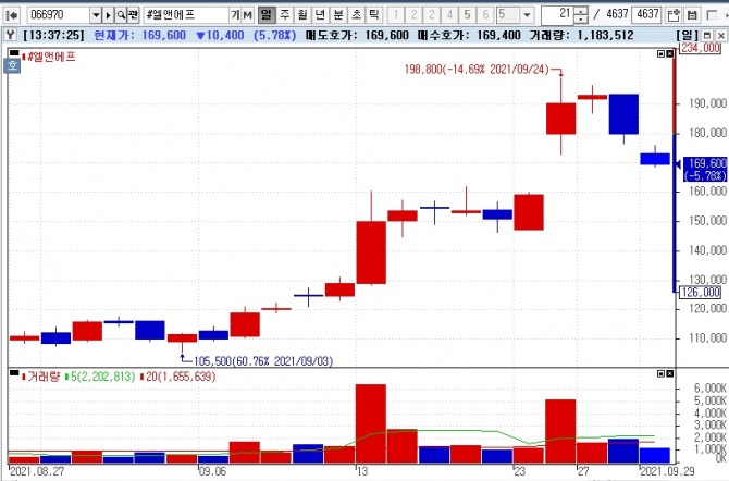 측히, 엘앤에프 주가는 이달 들어 47.67% 상승 중이며, 에코프로비엠도 39.76% 상승해 장을 주도 했다.