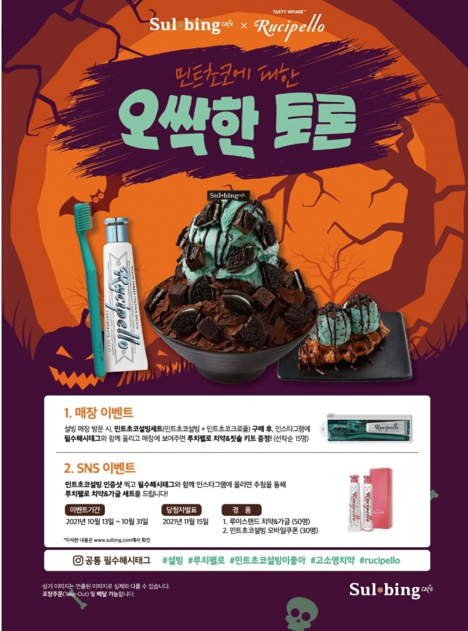 설빙의 협업 상대는 프리미엄 덴탈케어 브랜드 ‘루치펠로(Rucipello)’다. 양사는 설빙의 신메뉴 ‘민트초코크로플’ 출시를 기념해 오는 13일부터 31일까지 ‘민트초코에 대한 오싹한 토론’이라는 행사를 펼친다.
