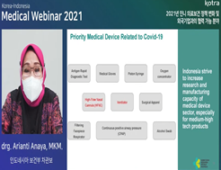 이에 KOTRA 자카르타무역관에서는 주인도네시아 대한민국대사관, 한국보건산업진흥원과 같이 작년에 이어 2년 연속 한국-인도네시아 메디컬 웨비나를 개최했다. 이번 웨비나를 통해 의료기기 분야 우리 기업들의 진출 시 참고할 만한 부분과 원격의료와 코로나 19 방역과 같이 우리 기업들이 주로 관심을 가지는 분야 동향을 정리해볼 수 있었다.
