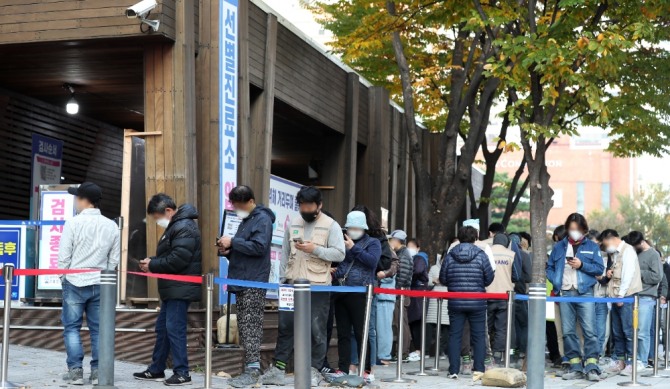 지난 주말 이태원 거리 등에 사람이 몰렸던 핼러윈데이와 위드 코로나의 영향이 반영되기 전이라 다음주에는 확진자가 더 급증할 것이란 전망도 나온다.