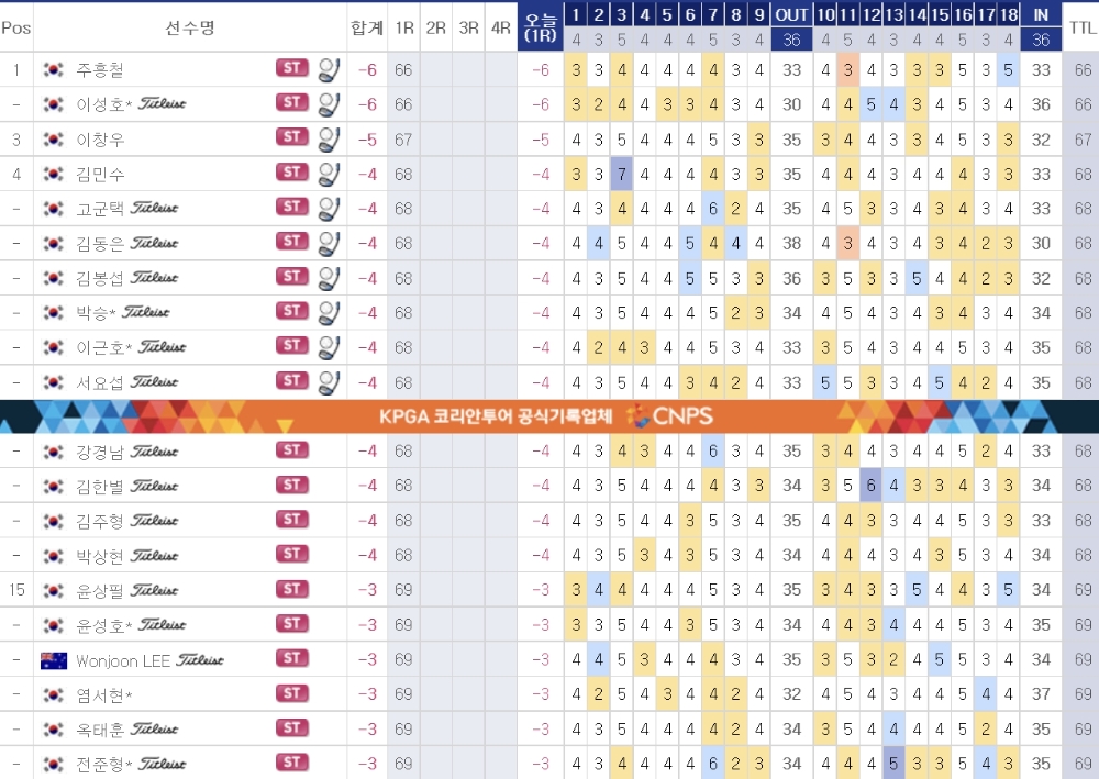 주흥철(40)과 이성호(34)가 6언더파 66타로 공동선두에 올랐다.
